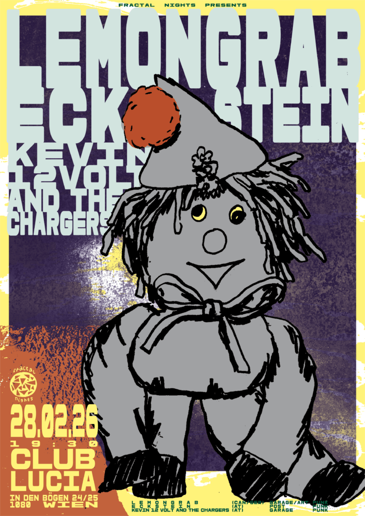 Eckstein ist ein Duo, bestehend aus den beiden Wahl-Wienern Hagen Eckstein und Jannik Rieß. Mit ihrer ersten Single tendieren eckstein zur dunkleren Seite des deutschsprachigen Post-Punks. Mit einer gewissen Prise jugendlicher Kraft und stimmlicher Eindringlichkeit schaffen es die beiden dennoch, nicht als Nostalgieprojekt zu wirken, sondern als zeitgenössisches Dokument alltäglicher Poesie, mal melancholischer und verträumter, mal brutaler. Live mit Bandbesetzung.